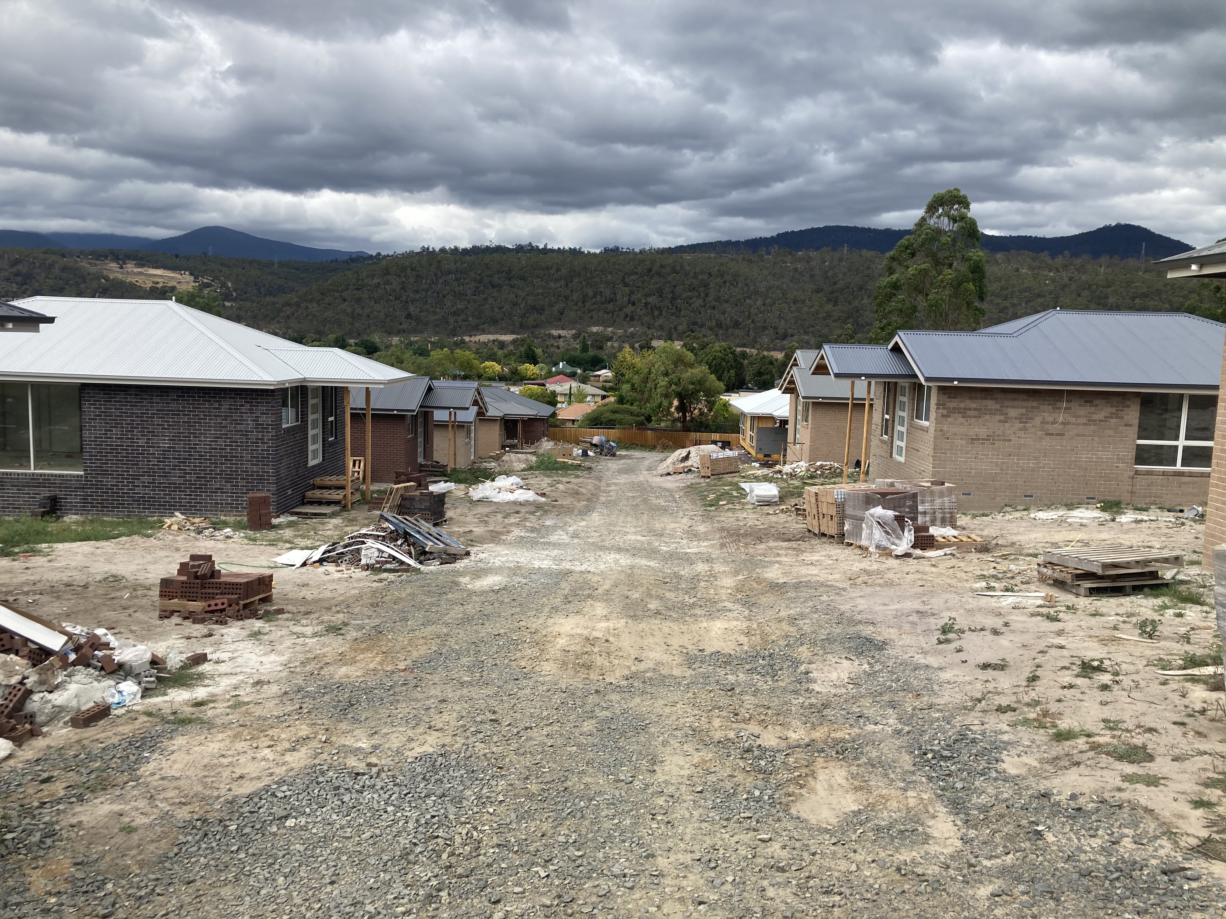 5 Graham Court, New Norfolk. This development has 9 single storey two-bedroom homes. The project commenced in early June 2020 and was completed just before Christmas 2020.